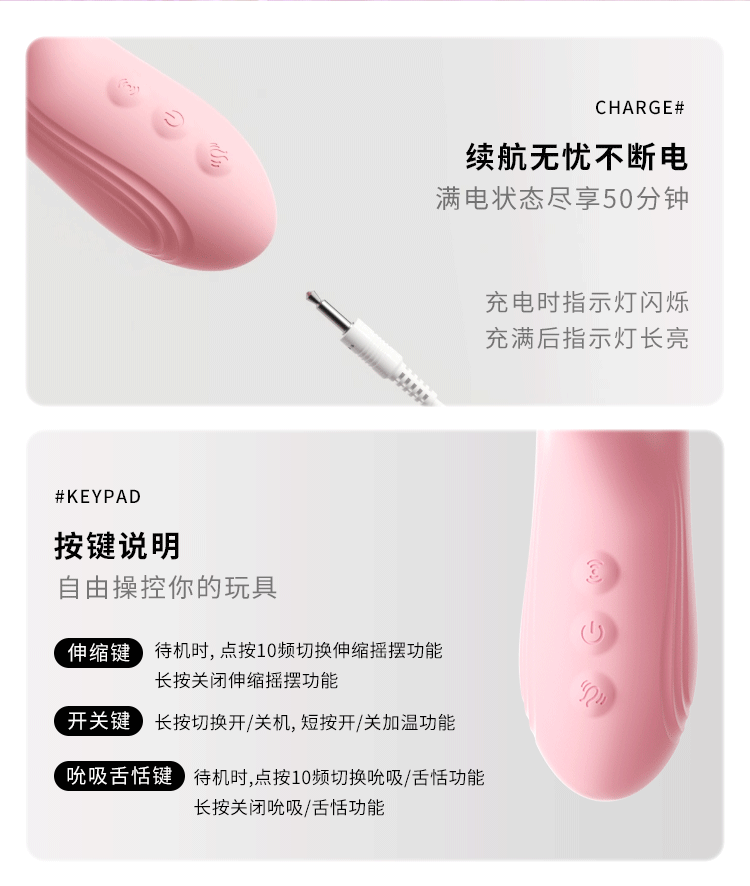 感觉很棒,外面耳朵刺激动力很强,伸缩摇摆的频率也设计得不错,外观很时尚,特别喜欢,很精致!