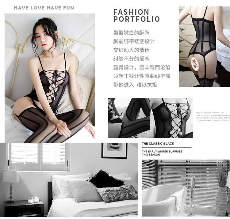 情趣内衣成人性感黑丝袜套装透视开裆连身袜