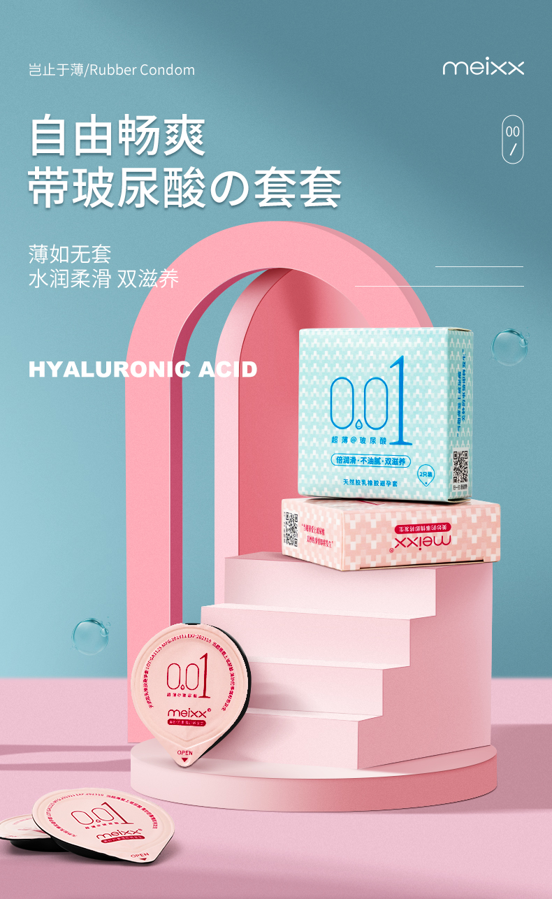 玻尿酸超润超薄情侣情趣安全套(2只装)