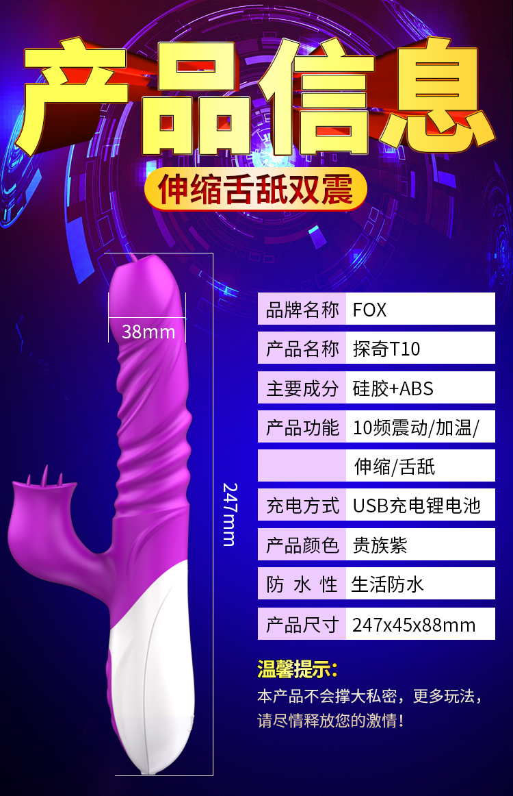 FOX探奇T10 G点按摩自慰器伸缩加温舌舔调情女用成人震动棒