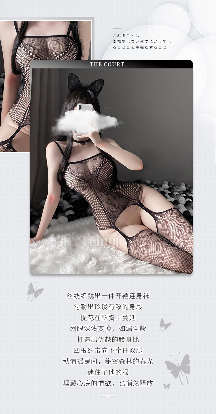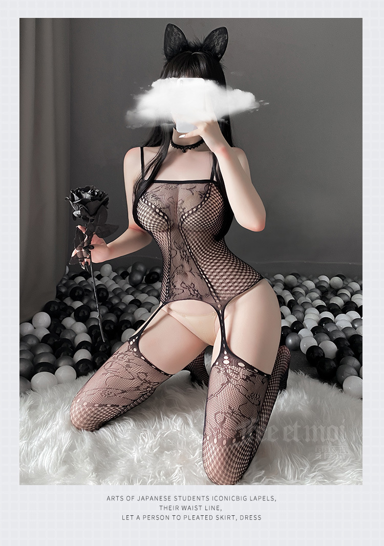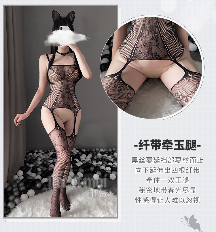 性感欧美交叉sm束缚挂脖蕾丝连体衣(带丝袜)