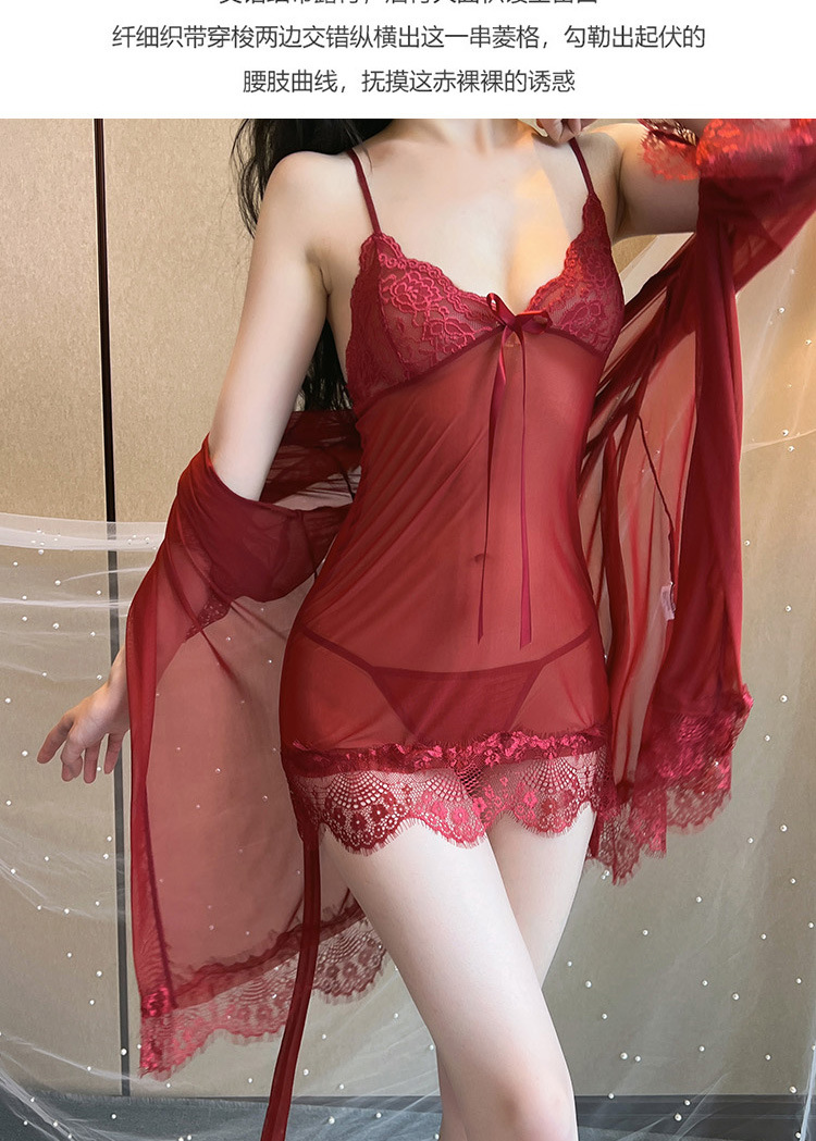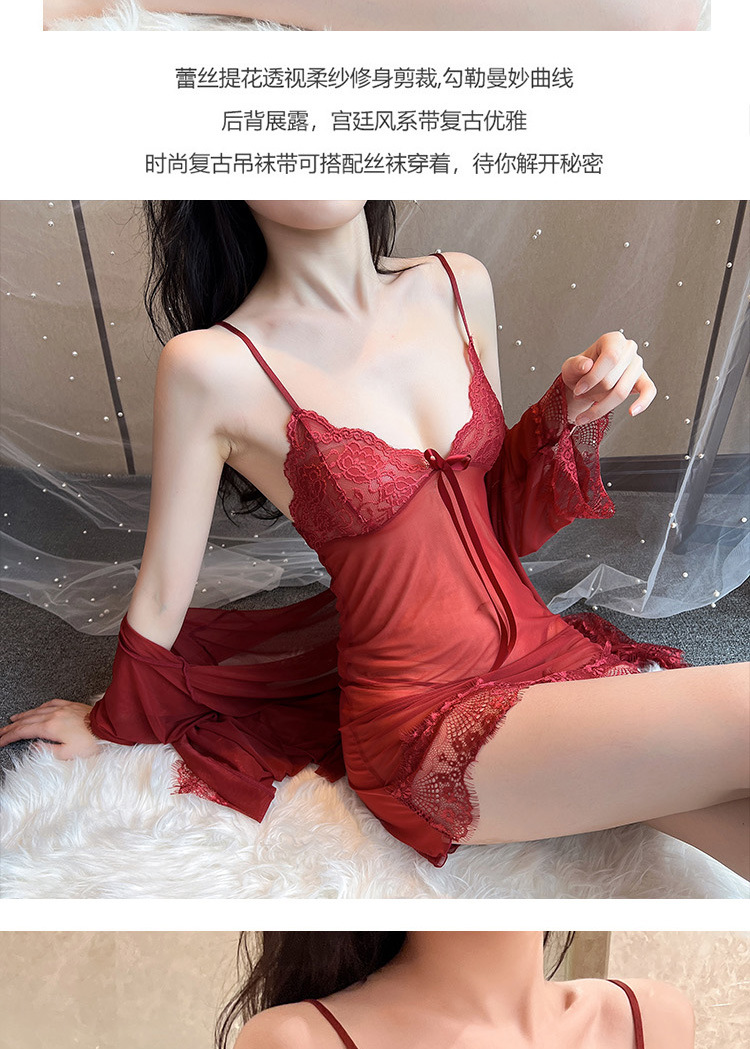 性感雪纺透视诱惑甜美荷叶边吊带睡裙