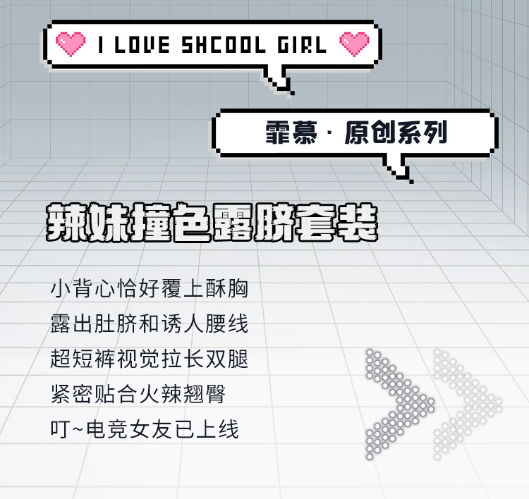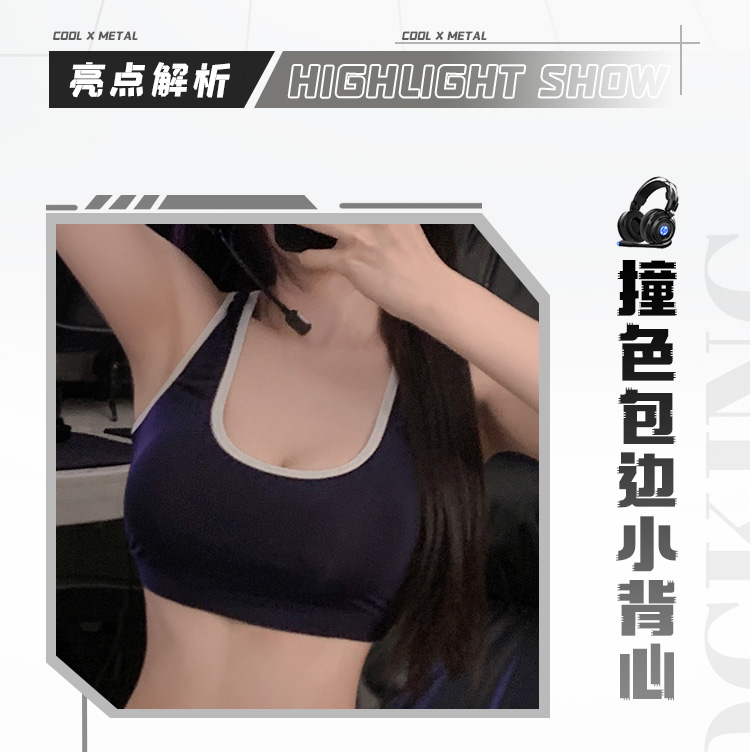 辣妹撞色包边露脐背心装 电竞女友 火辣活力
