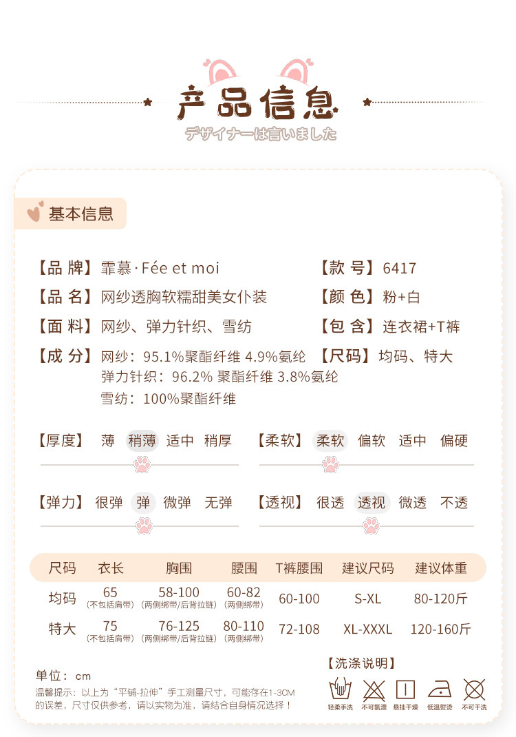 网纱透胸软糯甜美女仆装均码大码 纯欲诱惑