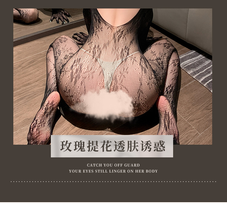 首页情趣内衣透视网衣 长袖覆指复古提花连身网袜 性感露背