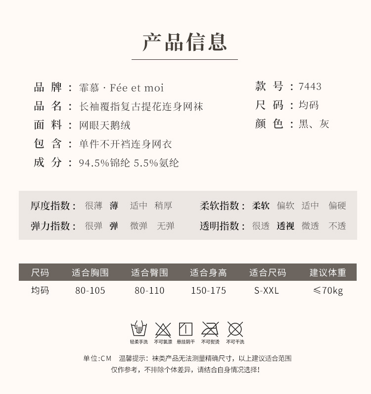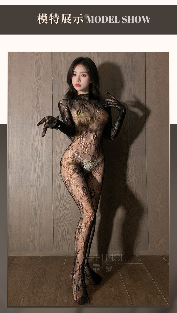 长袖覆指复古提花连身网袜 性感露背