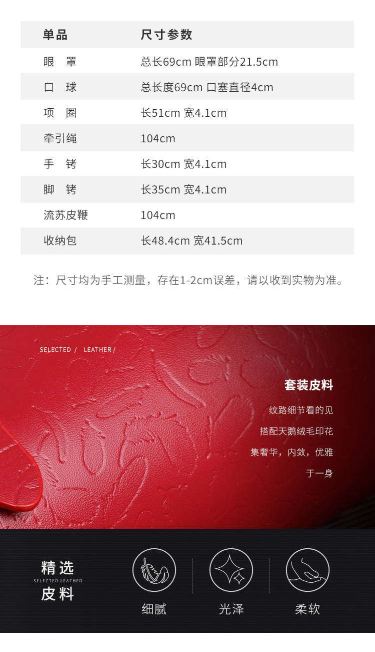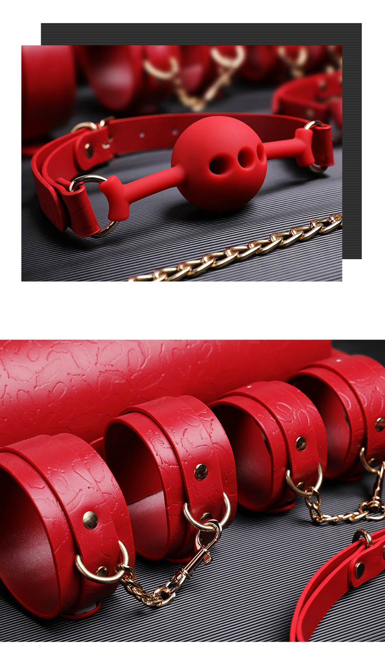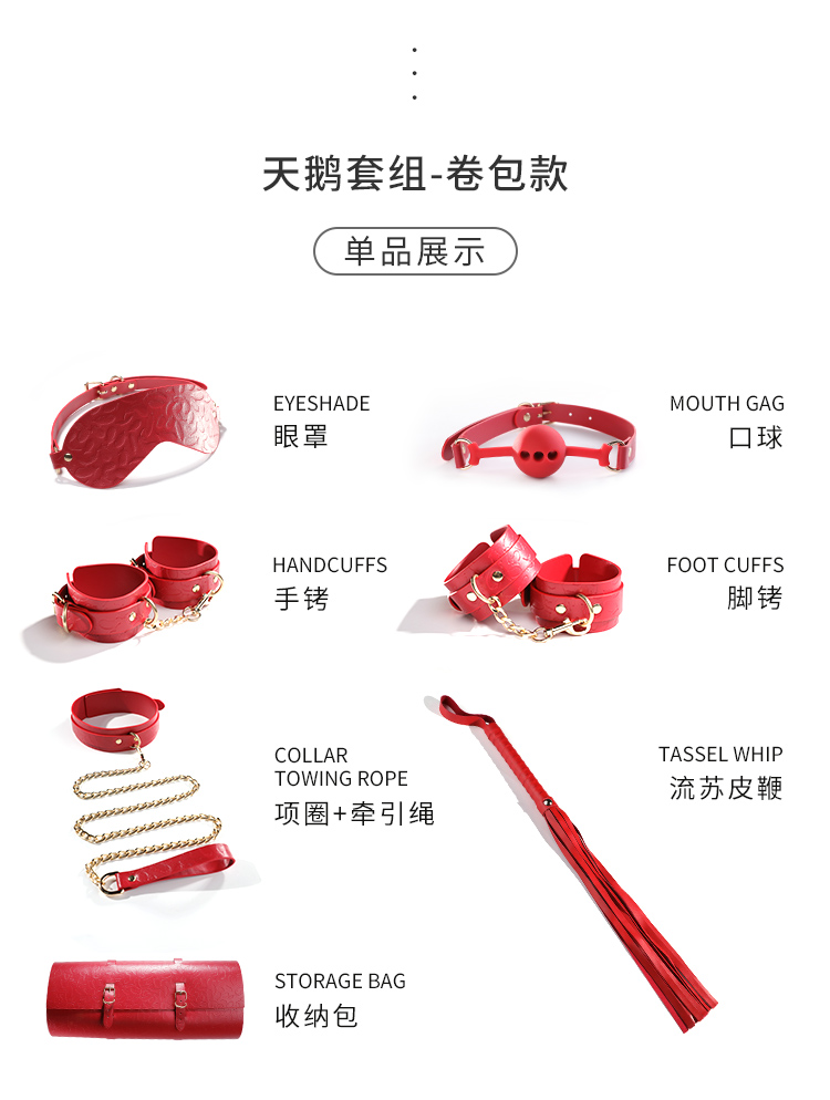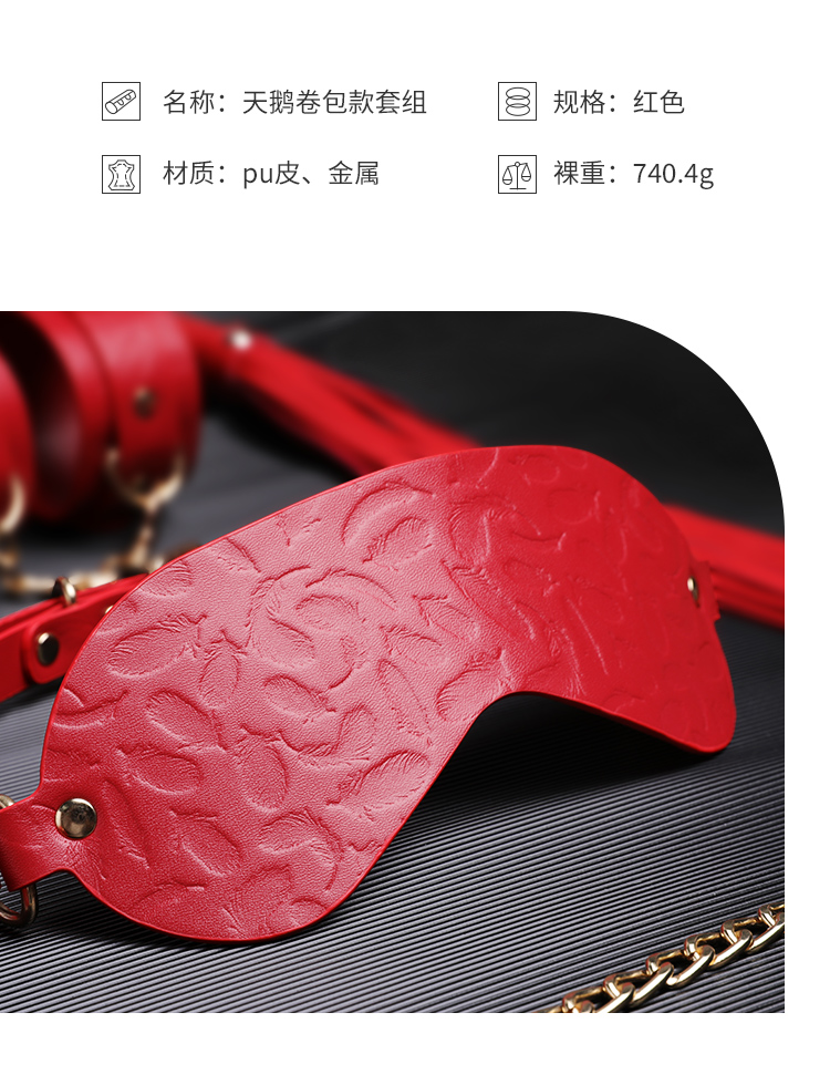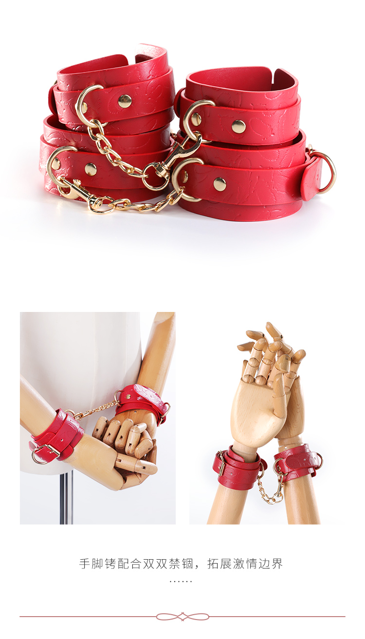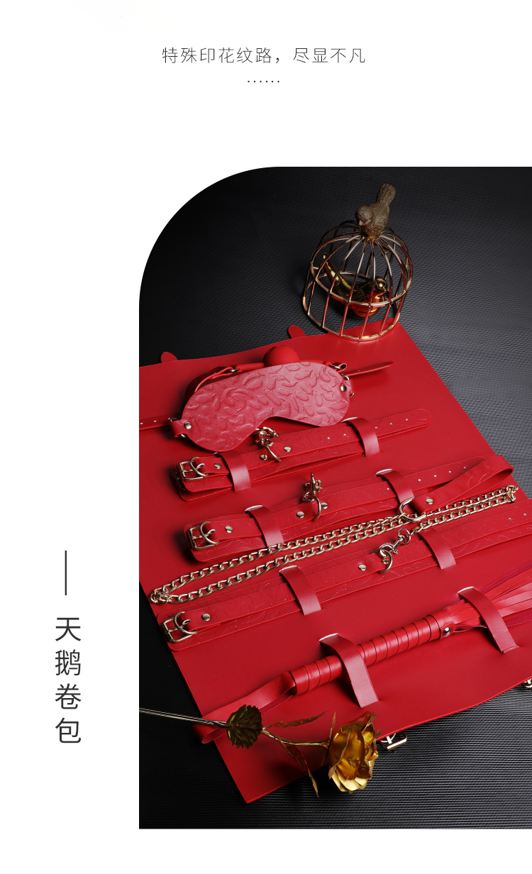 东西还是很不错的,买之前还担心收到后会有很重的气味,说句实话真的没啥异味,比起之前买的那家,真的是要好很多了。就是打开包装后有一点,不怎么掉毛。老婆喜欢红色的就买了一套试试,实物颜色也红的比较正的,摸起来手感也好。晚上用了很刺激,小皮鞭,抽起来挺带劲,将老婆手和脚 都绑在一起动不了,听她说不要不要,好爽