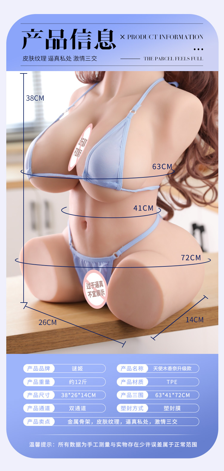 娃娃终于收到了,悬着的一颗终于心放下了,娃娃很不错,卖家的保密性工作做的不错,值得肯定,外包装箱子用胶带包裹了一层又一层,估计打一个包都是花十分钟吧!快递单上也没有什么产品信息!我个人是非常满意的。毕竟这东西让人知道了也不好!要的本来就是一种享受,而卖家给予的良好态度本身也是一加让人很享受的事情。拆包后,娃娃也没让我失望,很漂亮很逼真,全实体,特别要感谢客户很耐心的给我推荐了两套衣服,作为男人 实在买不来女娃的衣服,好评。
