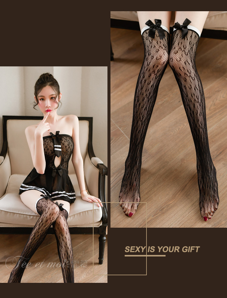 超薄透明网纱制服诱惑吊带提花开档连身袜